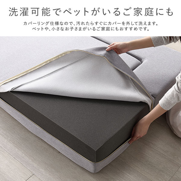 ソファ ベッド 2人掛け ダークグレー 洗えるカバー カバーリング仕様 肘付き 高反発ウレタン クッション 2個付き ソファーベッド ソファーベット ソファベット 2人掛けソファ
