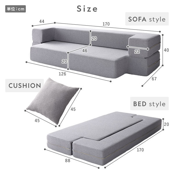 ソファ時:幅170×奥行67×高さ40cm(座面高:20cm)