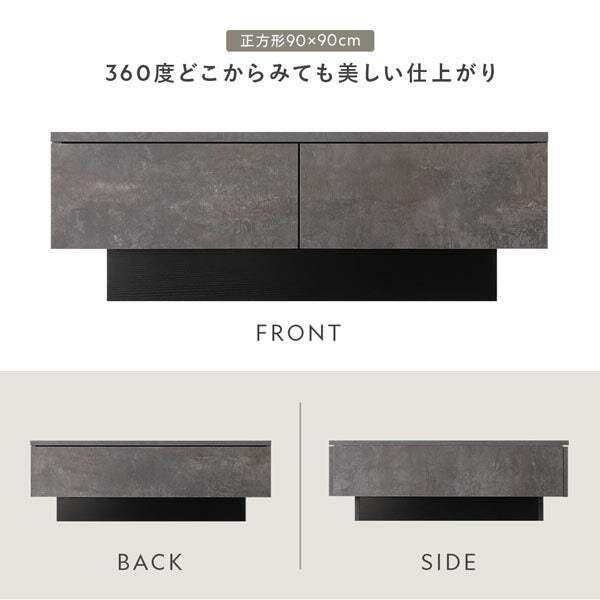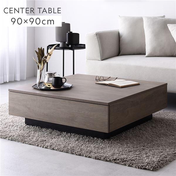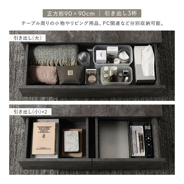 センターテーブル 正方形 約90×90cm グレージュ 引き出し 3杯付き ローテーブル リビング ダイニング インテリア家具