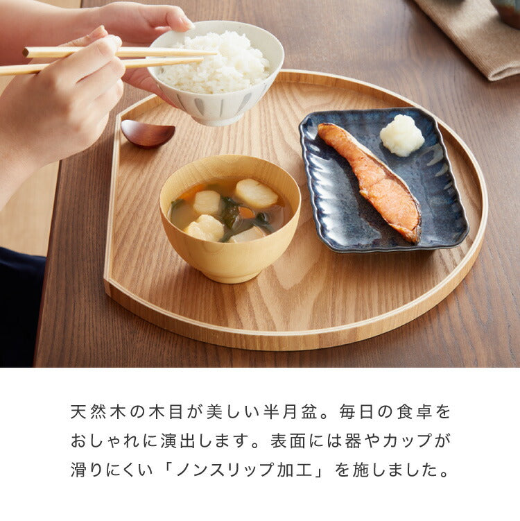 滑り止め加工 半月盆 36cm お盆 トレー ノンスリップ 滑らない 天然木 半月膳 ナチュラル 食卓 ランチ カフェ 可愛い かわいい すべらない 滑り止め加工 すべり止め加工(代引不可)